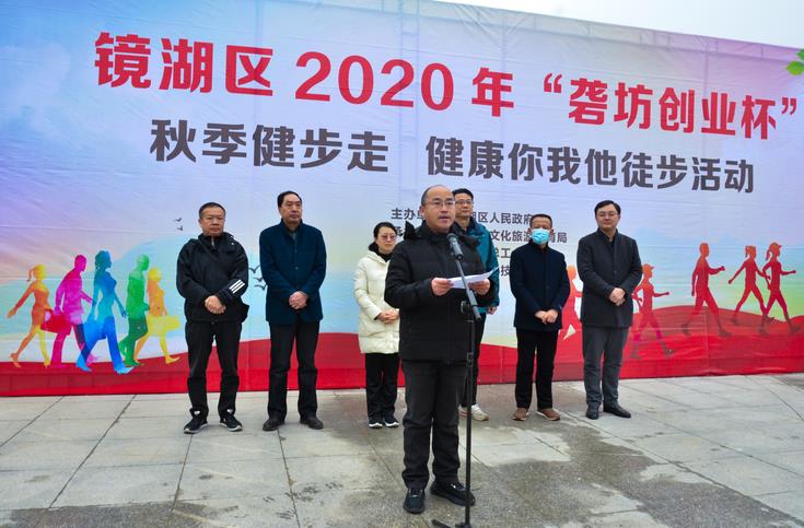 為落實(shí)鏡湖區(qū)2020年"健康鏡湖"全民健身活動計(jì)劃,提高全民參與科學(xué)健身的意識,12月3日,由鏡湖區(qū)人民政府主辦,區(qū)文化旅游體育局、區(qū)總工會承辦,大礱坊科技文化園協(xié)辦的2020年"礱坊創(chuàng)業(yè)杯"秋季健步走、健康你我他徒步活動在汀棠公園隆重舉行。區(qū)四大班子領(lǐng)導(dǎo)靳立剛、陳娟娟、王建明、朱光友、章建華,市體育局二級調(diào)研員江思紅等市、區(qū)領(lǐng)導(dǎo),園區(qū)負(fù)責(zé)人卞國琛等出席開幕式。